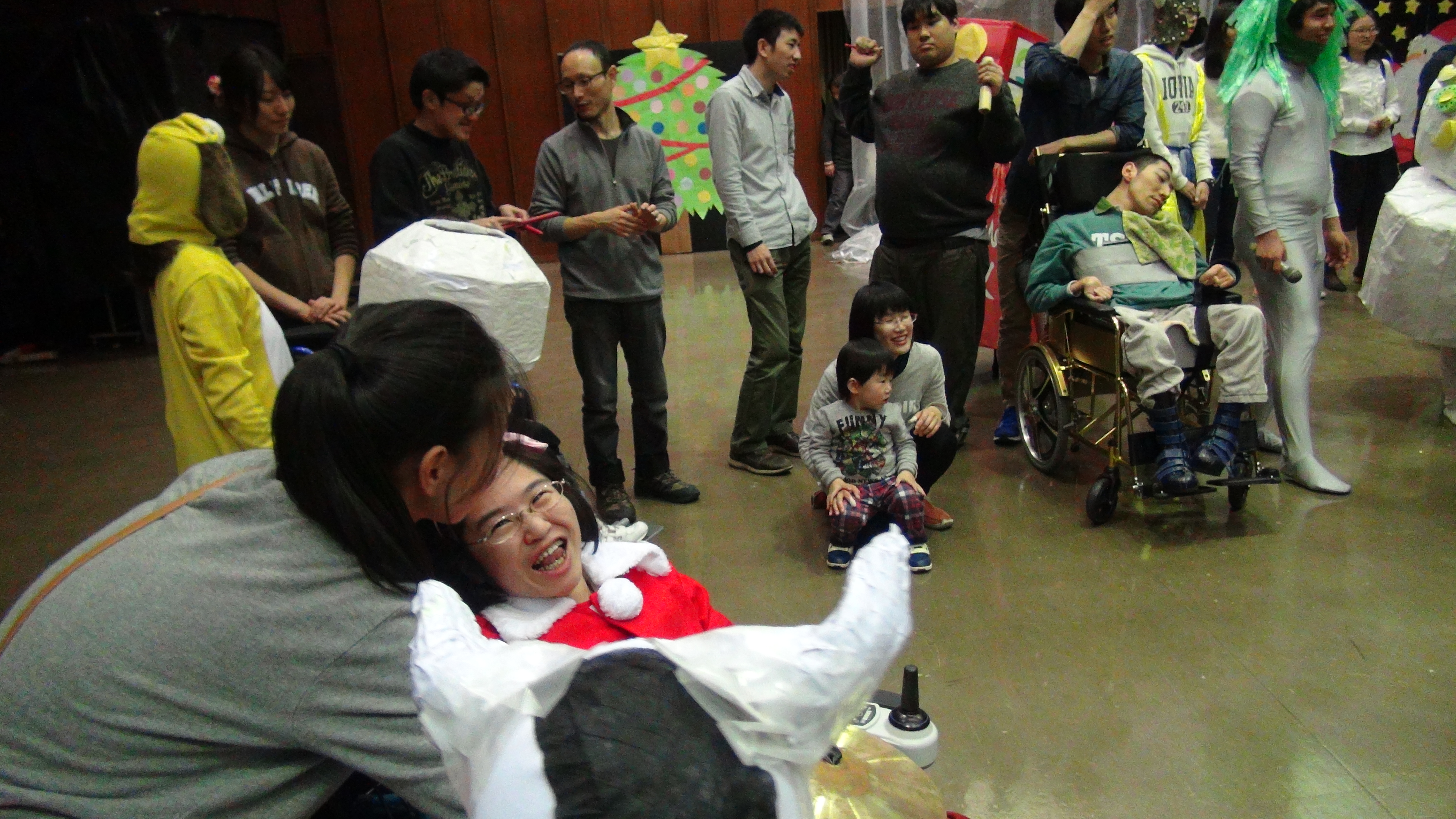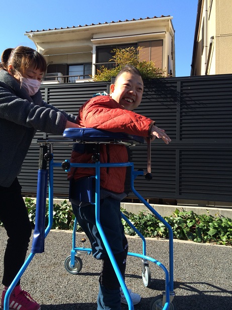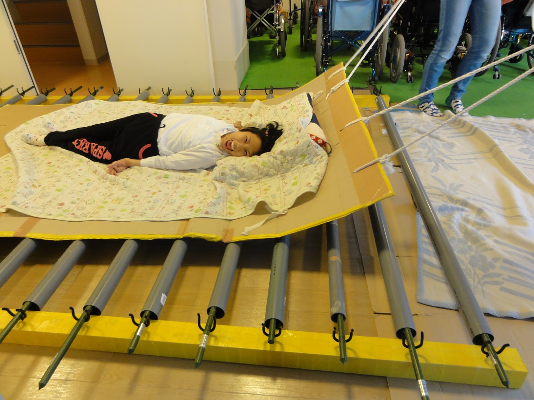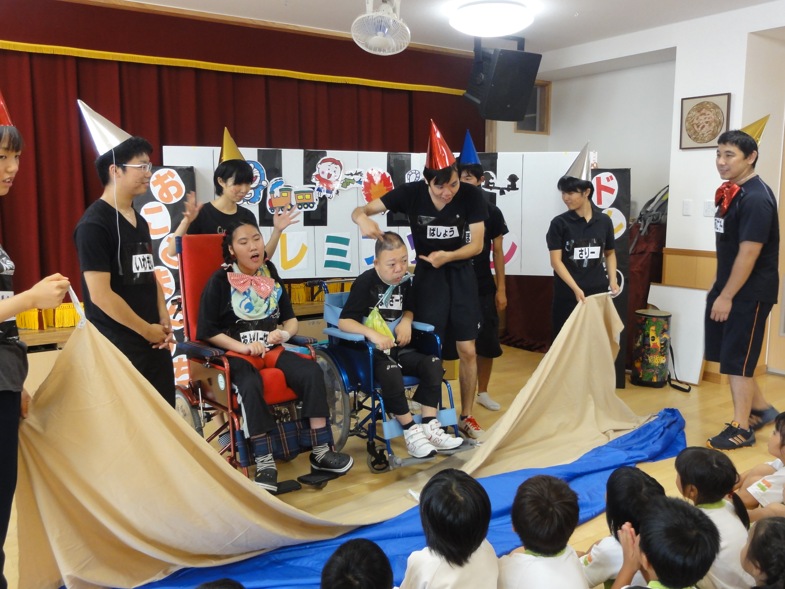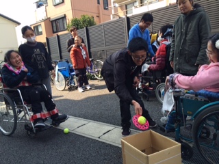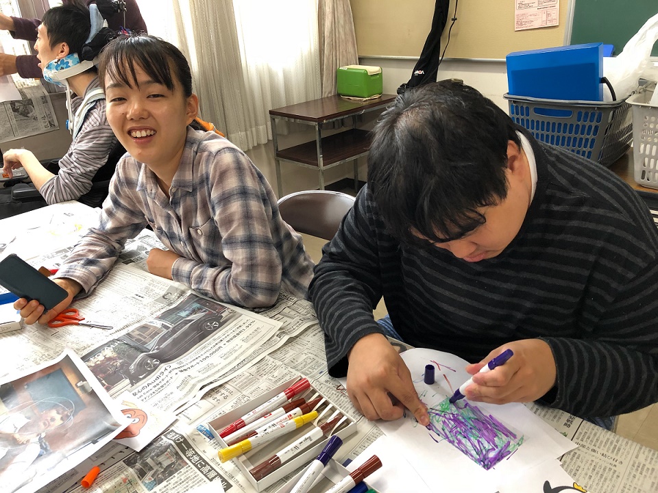 障害が重いメンバー個々に合わせた企画を考えます。これは何をしているのかな?