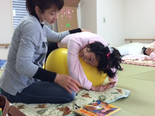 1人ひとりに合わせて身体を動かしていきます。マッサージをしたり、ストレッチをしたり、トレーニングボールに乗って自分の体重を利用してのストレッチや体幹トレーニング、歩行、四つ這いなどなど個々様々です。重い心身障害を持たれた方にとって毎日、できるだけ多くの時間をかけて誰かに体を「触ってもらう」ことはそれ自体コミュニケーションにつながりなりますし機能維持のためにもとても大事なことと考えています。おひるごはん