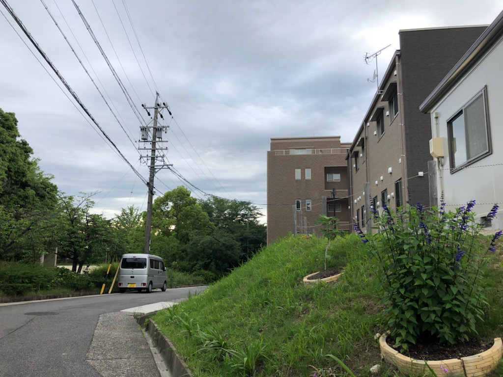 すぐ隣が緑豊かな城土公園です。定番のお散歩コース。