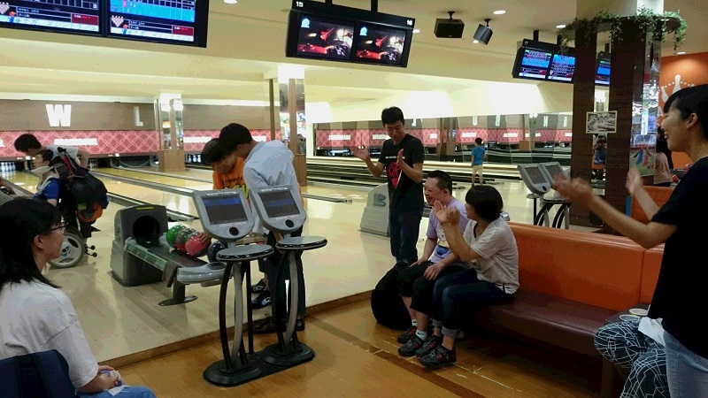 ボーリングは「投げる→ゴロゴロ→ピンが倒れる、音が響く」と五感刺激が得やすいスポーツです。自分の投げるポーズに酔う(?)メンバーや、ボールを目で追い倒れるまで集中するメンバー、歓声や雰囲気を楽しむメンバーそれぞれです。