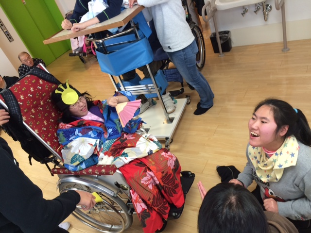 障害が重いメンバー個々に合わせた企画を考えます。これは何をしているのかな?